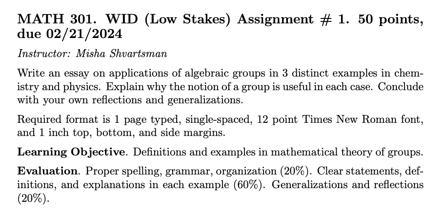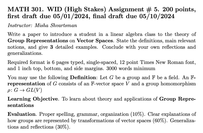 Writing Assignment Due Dates: 05/01 (first draft is due), 05/10 (final