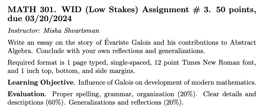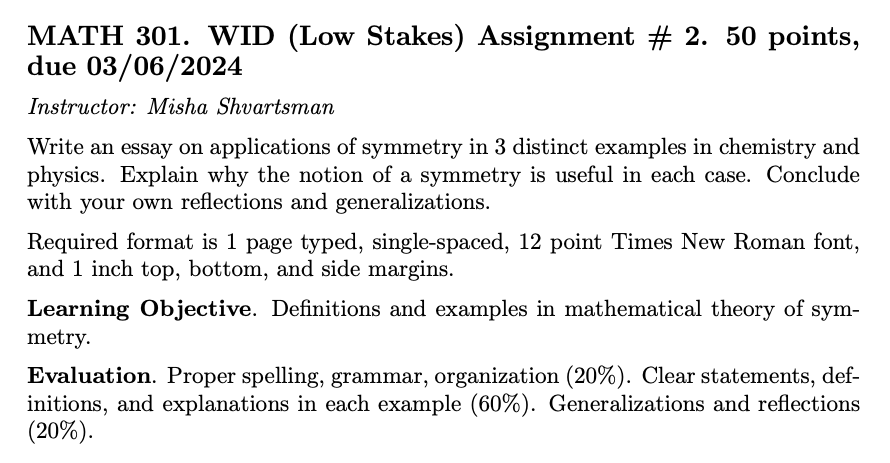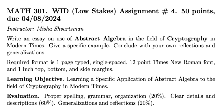 Assignment Due Dates: 02/21, 03/06, 03/20, 04/08